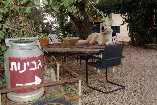אח"כ חיפשנו גבינות טעימות שיהיו לנו לצימר, והסתובבנו בכל הגליל בערך ללא הצלחה. נסענו עד מושב בן עמי רק כדי לגלות שחנות המחלבה שלהם סגורה, ואז למדנו מהניסיון והחלטנו להתקשר לפני שאנחנו נוסעים 40 דקות למקום לא ידוע. אז התקשרנו למקום שמוכר גבינות במושב אבירים ושאלנו עד מתי הם פתוחים. האישה בטלפון ענתה לי "תמיד". אוקיי, שיהיה. נסענו והגענו לסוף העולם (או בשמו המלא אבירים)- זהו מושב קטן והזוי, בסוף כביש פתלתל ובו מצאנו "חנות" גבינות שאכן פתוחה תמיד: